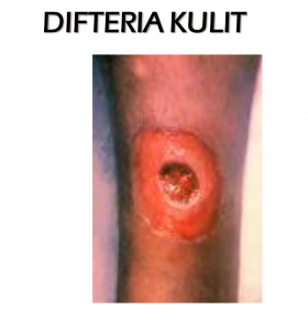 Difteri juga terkadang dapat menyerang kulit dan menyebabkan luka seperti borok (ulkus). Ulkus tersebut akan sembuh dalam beberapa bulan, tapi biasanya akan meninggalkan bekas pada kulit.